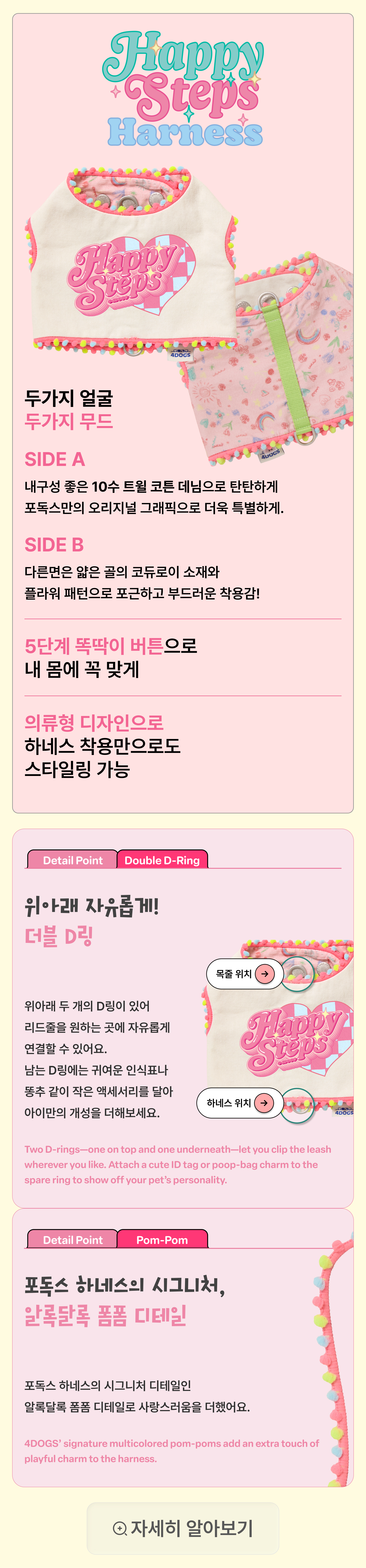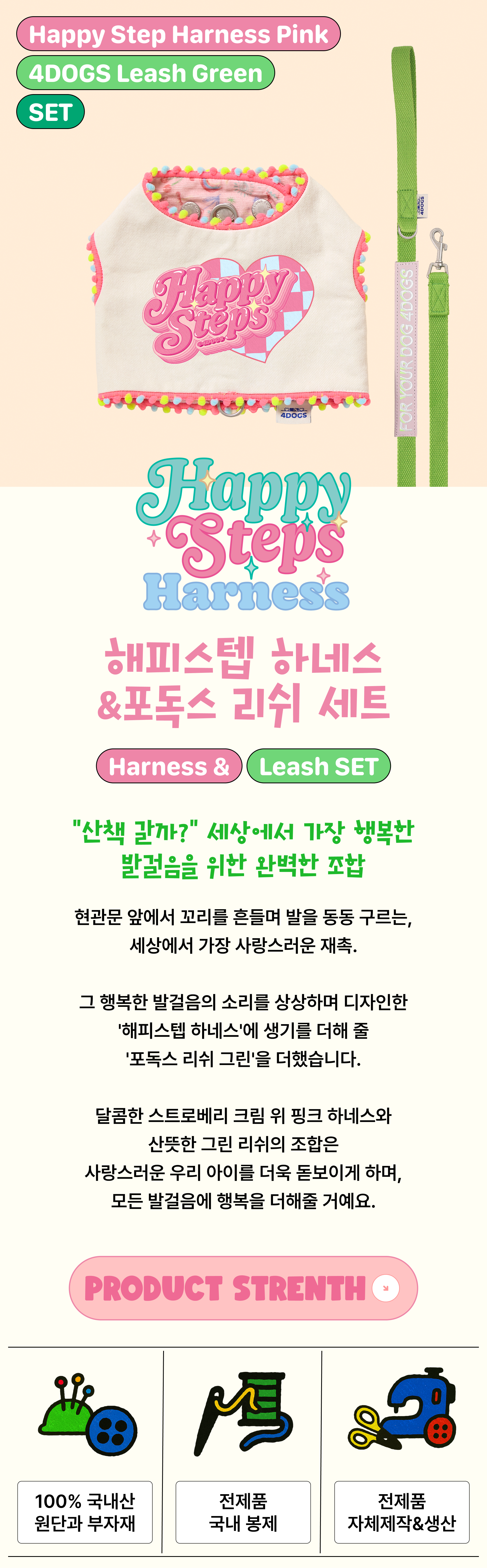 [세트] 해피스텝 하네스 핑크 & 포독스 리쉬