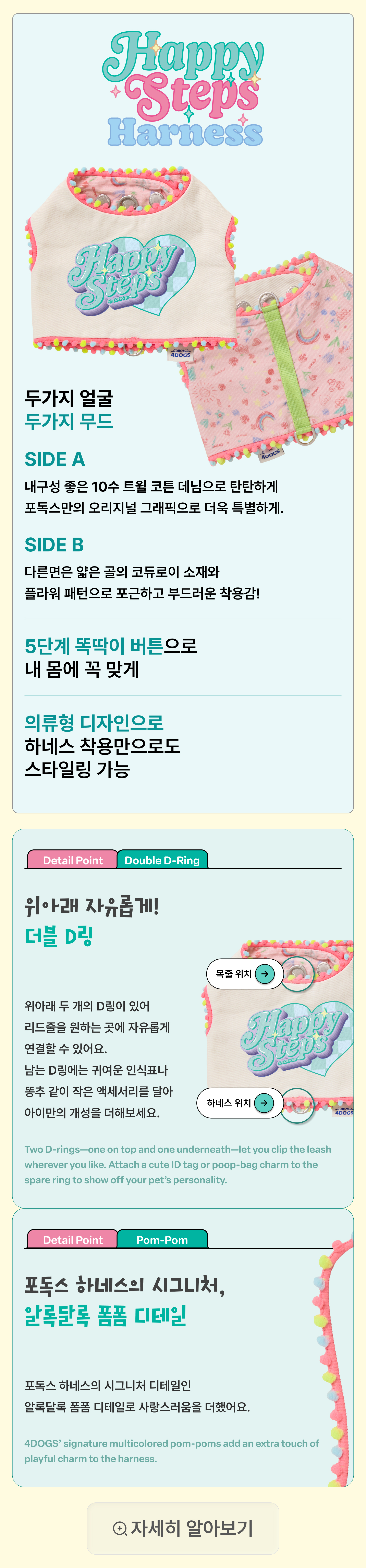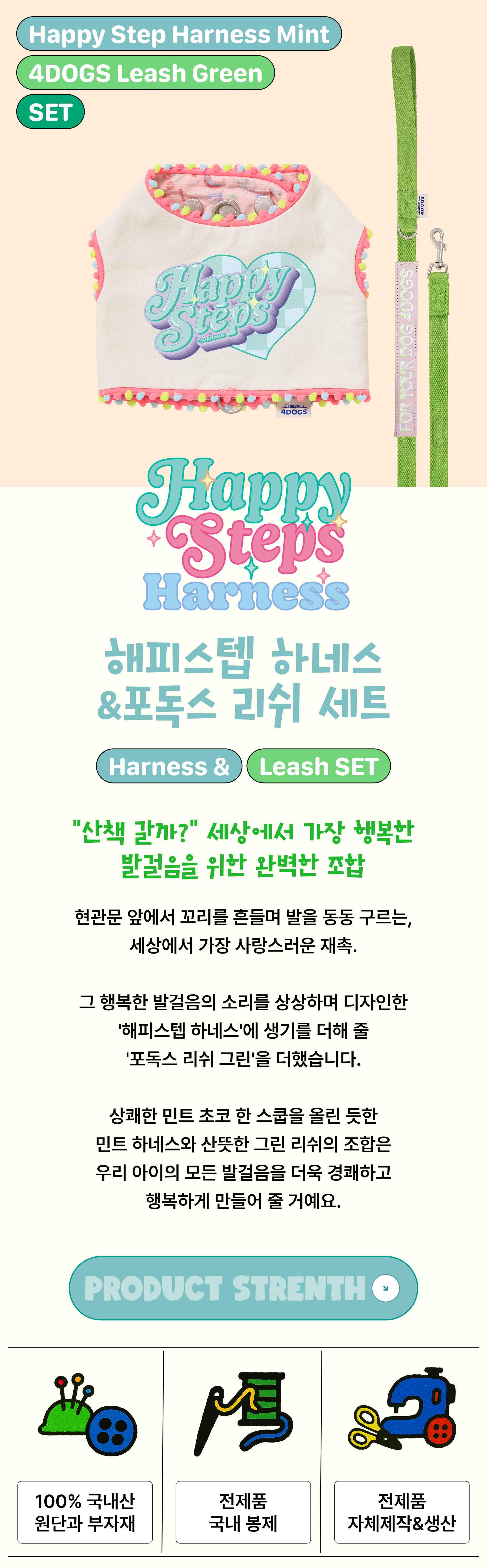 [세트] 해피스텝 하네스 민트 & 포독스 리쉬