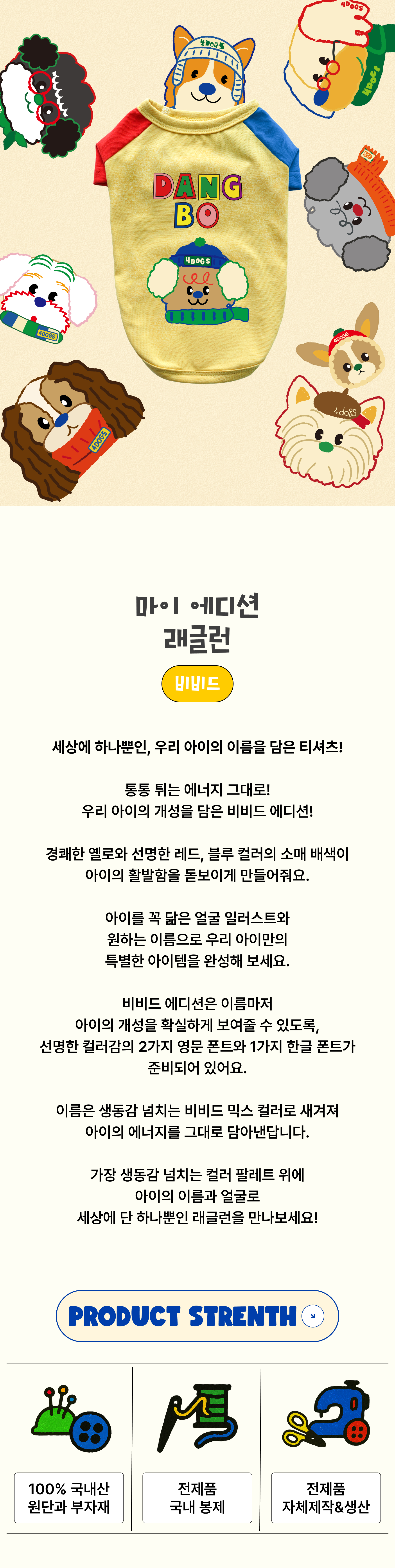 오트밀 컬러 위에 우리 아이를 닮은 일러스트와 문구를 넣어 단 하나뿐인 티셔츠를 만들어보세요