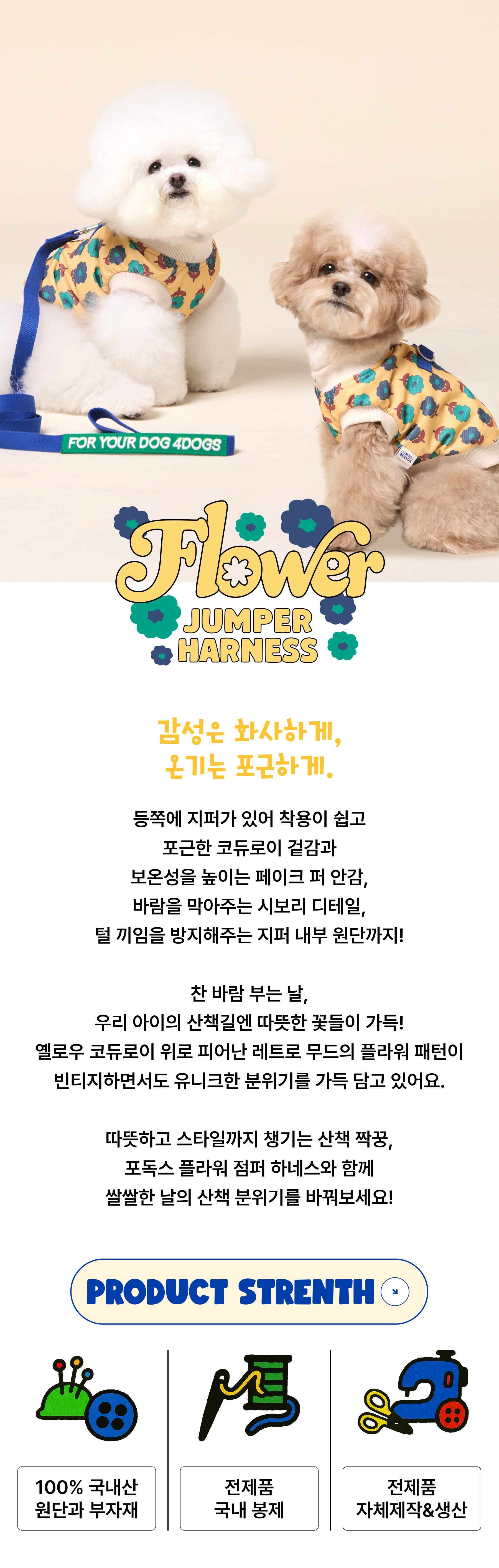 매 시즌 사랑받는 4DOGS의 대표 강아지 옷, 점퍼 하네스의 새로운 버전.