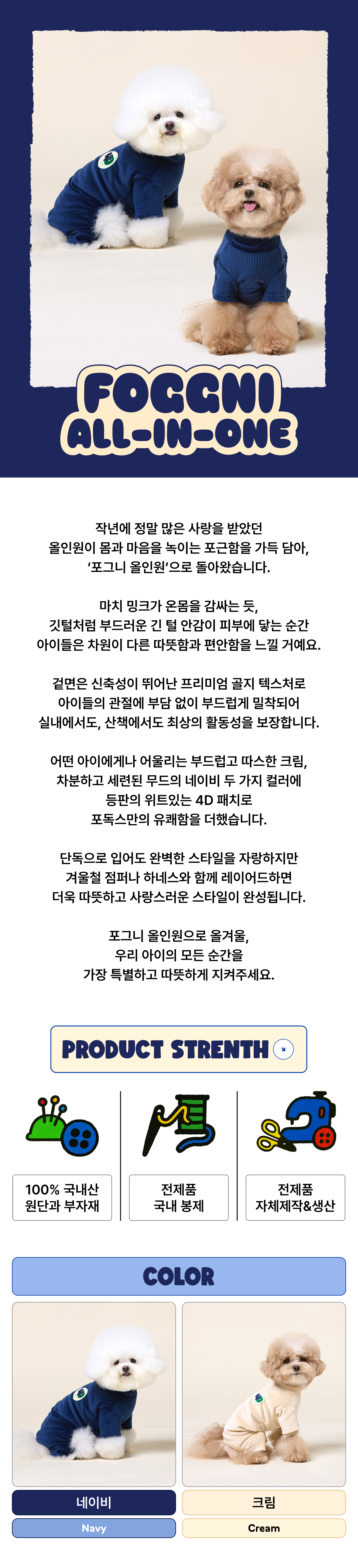 올겨울, 포근한 착용감의 강아지 올인원으로 우리 아이의 체온을 지켜주세요.