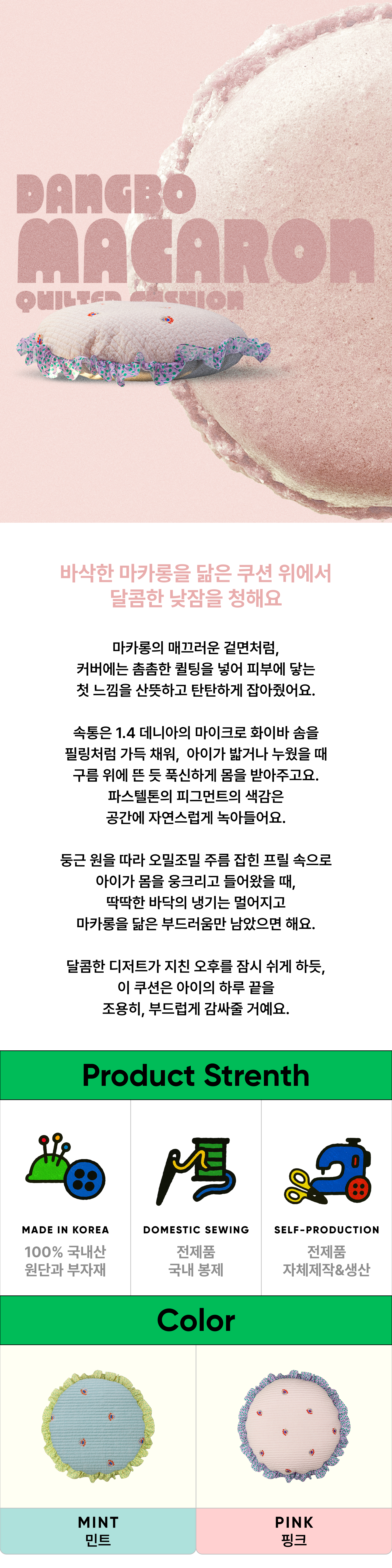 아이들의 휴식 공간을 더욱 포근하게 만들어 줄 댕보 마카롱 퀼팅 쿠션 민트