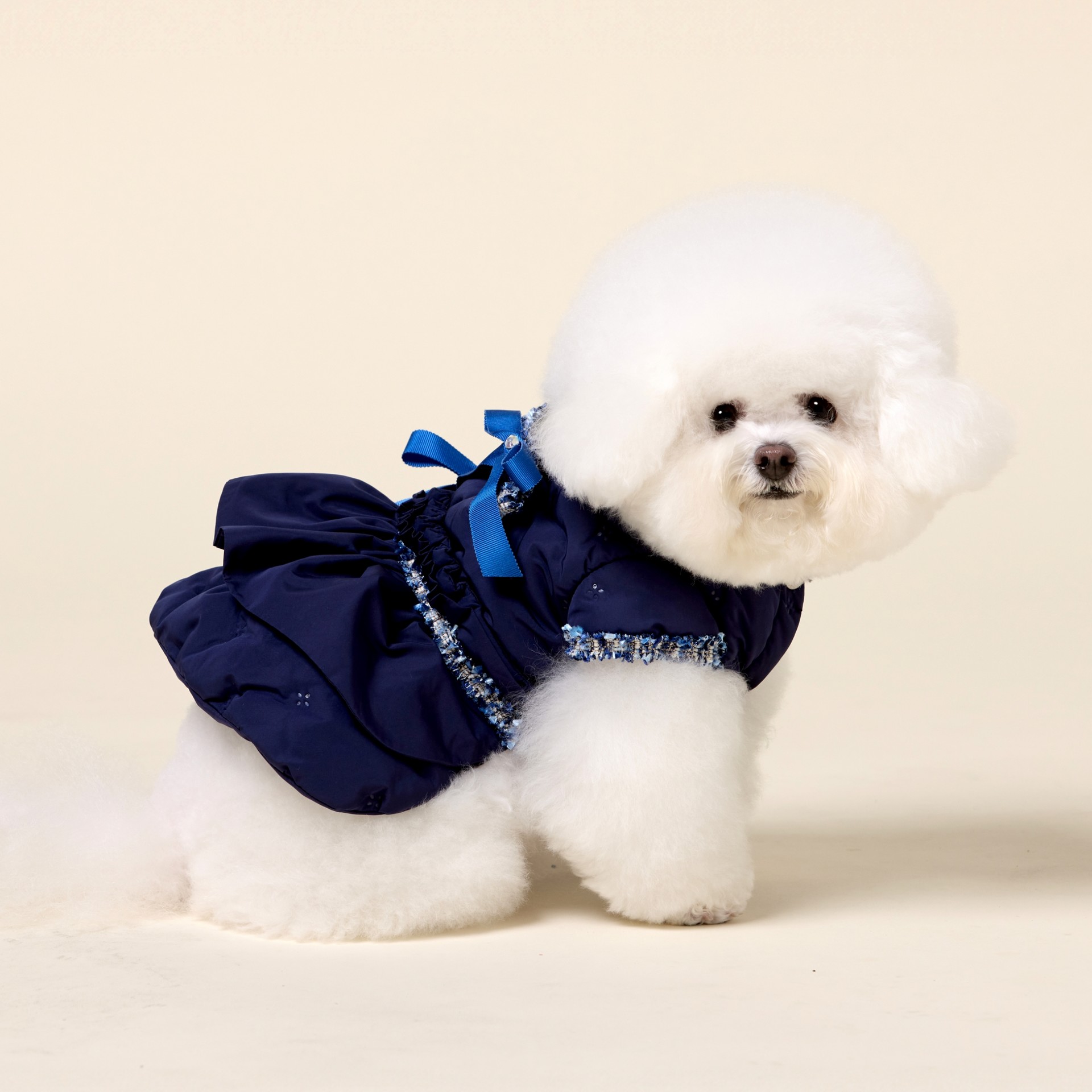 [OUTLET] 프릴 패딩 원피스 네이비