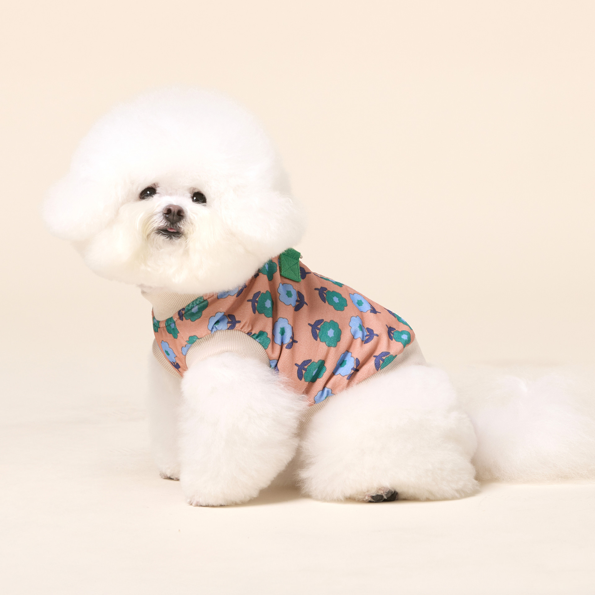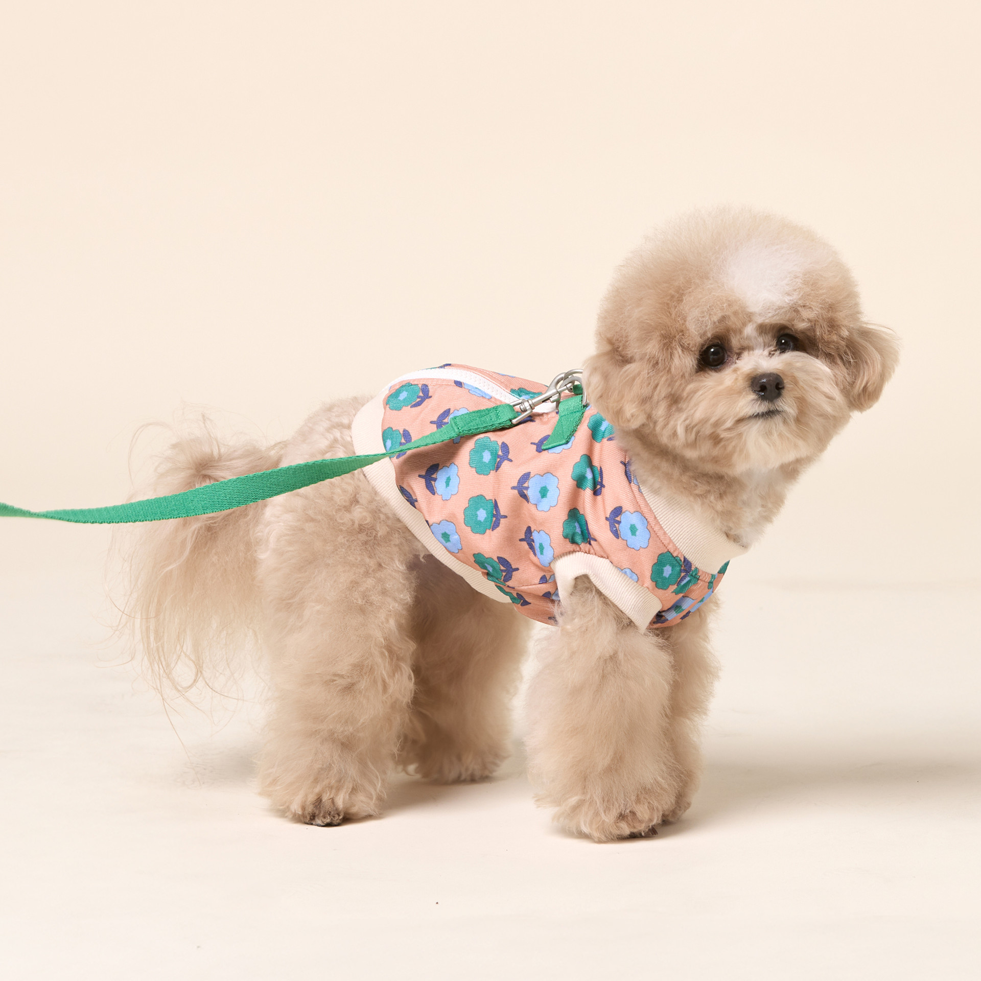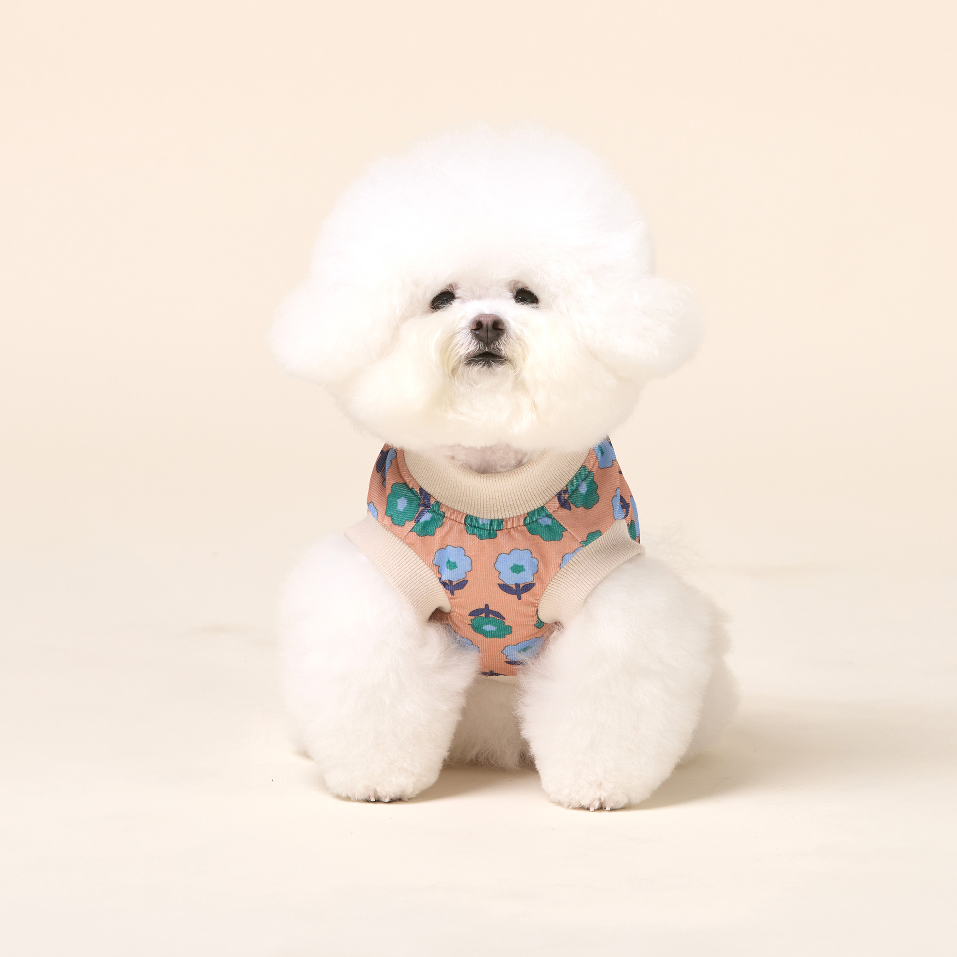 레트로 플라워 패턴의 코듀로이 소재와 하네스가 결합된 올인원 디자인으로 간편한 산책을 위한 필수품입니다.