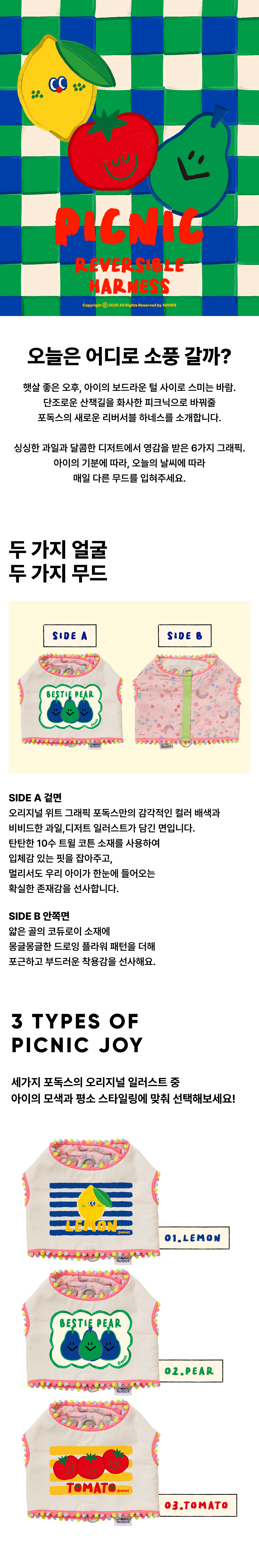 소풍의 설렘을 담은 피크닉 리버서블 하네스입니다.