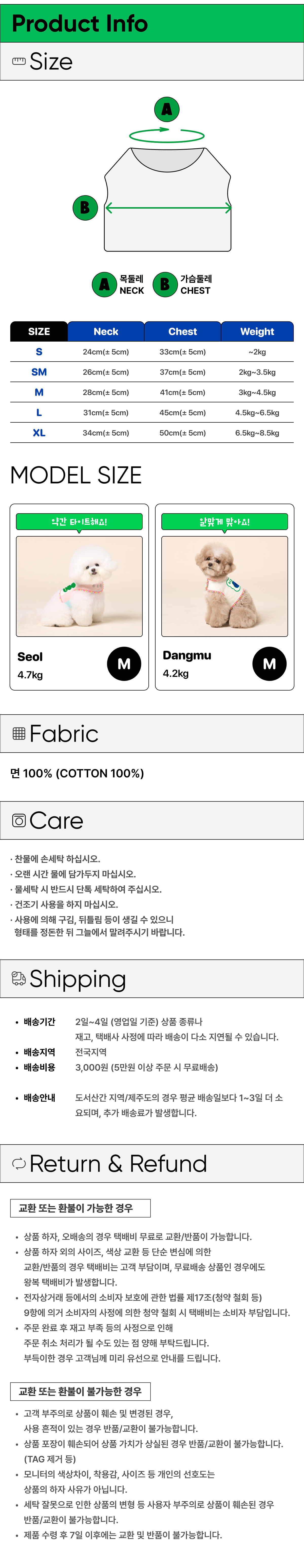 · 차트 상의 체중과 견종은 참고를 위한 것이며 체형과 털 길이에 따라 적정 사이즈는 달라질 수 있습니다.